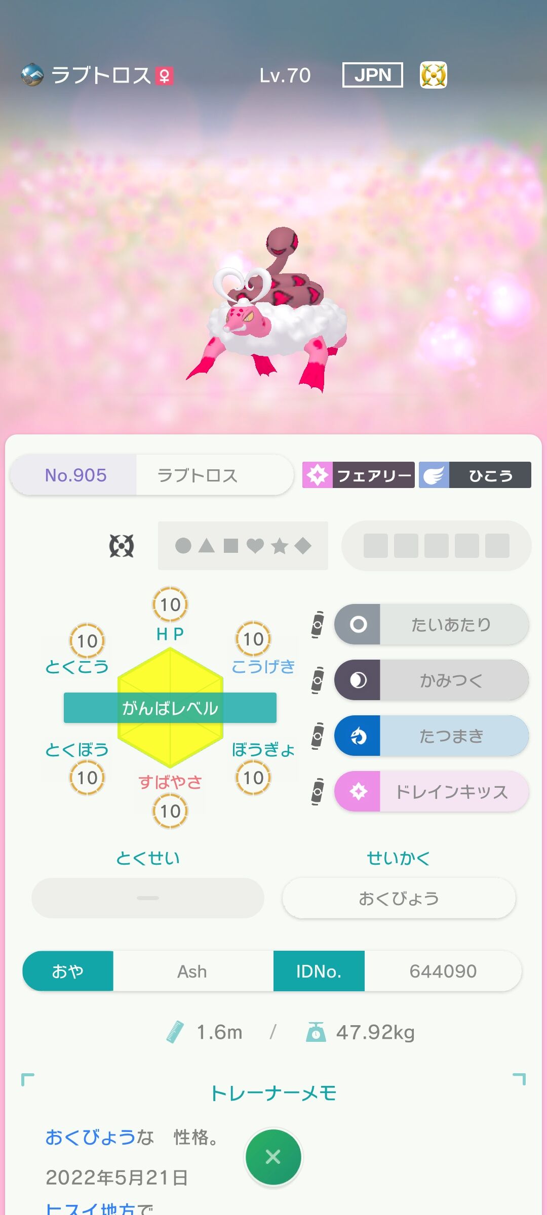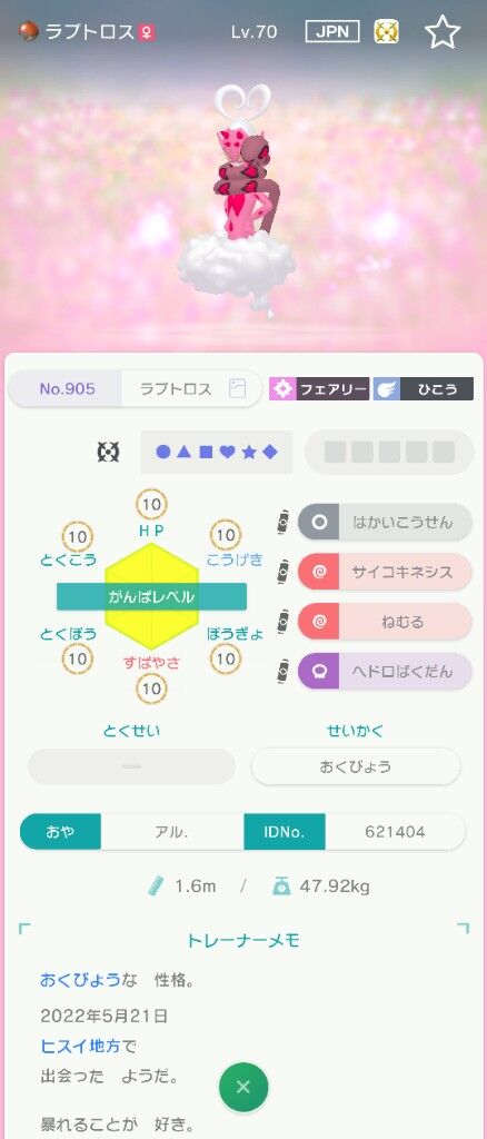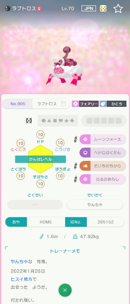 モンボ入りがんばレベル全部10の臆病ラブトロスLv.70って結構怪しい?