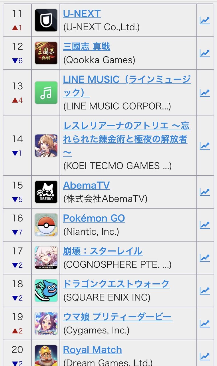 ガチャも無いしこの1位は割と凄いと思う